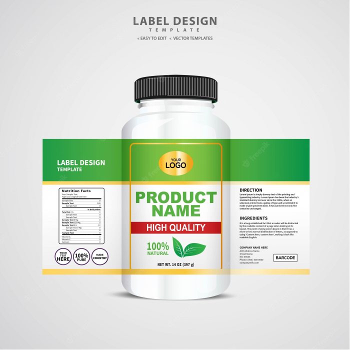 - Distinctive branding elements such as logos, colors, and typography on labels help differentiate a product from competitors and reinforce brand identity.